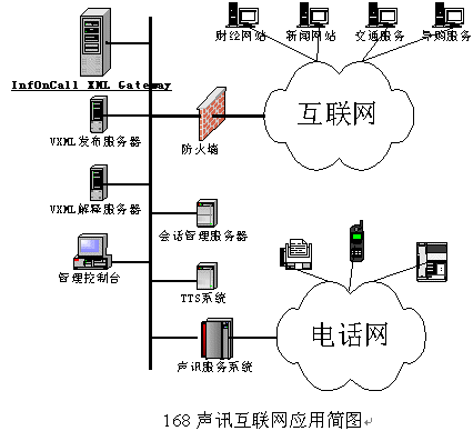 穎科VoiceXML技術(shù)成功應(yīng)用于遼寧電信168聲訊互聯(lián)網(wǎng)系統(tǒng),也是VoiceXML技術(shù)在國內(nèi)首次成功實(shí)現(xiàn)電信級應(yīng)用。在原有的聲訊平臺(tái)上,通過新添加的穎科VXML系統(tǒng),可以充分利用VoiceXML的優(yōu)勢,實(shí)現(xiàn)增值業(yè)務(wù)快速得開發(fā)、部署、和更改,借助IXG工具,能夠快速得開發(fā)出互聯(lián)網(wǎng)聲訊業(yè)務(wù)。