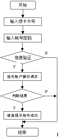 此功能為用戶提供賬號臨時(shí)掛失業(yè)務(wù),使用戶的損失減到最小。 用戶通過特定的接入碼進(jìn)入呼叫中心,選擇賬戶掛失后,呼叫中心語音提示用戶輸入帳號密碼,平臺將用戶的數(shù)據(jù)送至金融主機(jī)系統(tǒng),然后根據(jù)返回的信息將處理結(jié)果語音提示給用戶。用戶臨時(shí)掛失后,還必須到營業(yè)前臺進(jìn)行正式的掛失操作。流程圖如下圖。