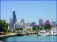 芝加哥并不是一個旅游城市,人口也只有200多萬。如果說觀光景點的話,就只有位于城市中心由近40多座高樓組成的摩天大樓群,高聳入云的高樓一座連著一座,使得芝加哥整個城市看上去象是鋼筋水泥構(gòu)成的森林,充滿了大都市的氣魄。其中的西爾斯大廈(Sears