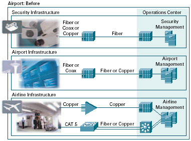 。。 由于預(yù)算不斷波動(dòng)、物理空間有限,且已對(duì)網(wǎng)絡(luò)基礎(chǔ)設(shè)施進(jìn)行了投資,當(dāng)前的機(jī)場(chǎng)和航空公司無(wú)法承受巨大的商業(yè)風(fēng)險(xiǎn)。而由分立 IT 網(wǎng)絡(luò)元素組成的基礎(chǔ)設(shè)施極大地限制了改進(jìn)的能力,帶來(lái)了功能化信息孤井、重復(fù)應(yīng)用、專(zhuān)用航空公司系統(tǒng)、不同的網(wǎng)絡(luò)協(xié)議,以及昂貴、復(fù)雜的網(wǎng)絡(luò)設(shè)計(jì)和部署。