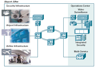 。。 許多機(jī)場(chǎng)安全系統(tǒng)基于需人工協(xié)調(diào)提示和報(bào)警的不兼容應(yīng)用。通過(guò)在網(wǎng)絡(luò)上實(shí)現(xiàn)這些系統(tǒng)和在基于標(biāo)準(zhǔn)的通用基礎(chǔ)設(shè)施上傳輸信息,機(jī)場(chǎng)可實(shí)時(shí)關(guān)聯(lián)安全信息,并根據(jù)整體形勢(shì)作出立即行動(dòng)。思科提供了一個(gè)強(qiáng)大的網(wǎng)絡(luò)基礎(chǔ)設(shè)施,可集成機(jī)場(chǎng)中的視頻監(jiān)視、其它物理安全設(shè)備和用于緊急響應(yīng)及通信的設(shè)備。無(wú)論設(shè)備使用有線(xiàn)還是無(wú)線(xiàn)連接,都可在所有類(lèi)型的設(shè)備上實(shí)現(xiàn)語(yǔ)音、視頻和數(shù)據(jù)交換。