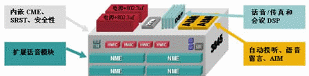 思科集成多業(yè)務(wù)路由器平臺(tái)中直接內(nèi)嵌了話音和安全功能,使客戶只需安裝用于IP電話會(huì)議的數(shù)字信號(hào)處理器(DSP)和高級(jí)集成模塊(AIM)、話音網(wǎng)關(guān)、Cisco