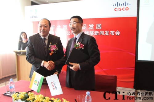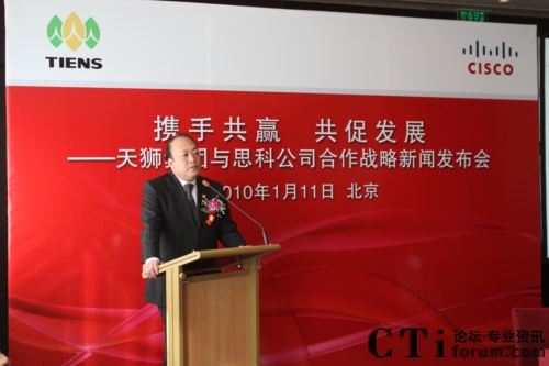CTI論壇(ctiforum)1月12日消息(記者 張塵):2010年1月11日,北京——“攜手共贏 共促發(fā)展——天獅集團與思科公司戰(zhàn)略項目新聞發(fā)布會”在北京召開,雙方共同宣布,天獅集團國際健康產(chǎn)業(yè)園網(wǎng)絡(luò)平臺成功啟用,并正式達成合作戰(zhàn)略。天獅集團董事長兼總裁李金元先生與思科全球副總裁、思科中國副董事長兼總裁林正剛先生出席新聞發(fā)布會,并進行簽約儀式。通過本次強強聯(lián)合,思科面向服務(wù)的網(wǎng)絡(luò)架構(gòu)(SONA)全面部署于天獅集團國際健康產(chǎn)業(yè)園,為天獅集團業(yè)務(wù)的穩(wěn)定持續(xù)發(fā)展以及信息化水平的進一步提升提供了可靠保證,同時也為雙方未來更深層次的合作打下了堅實的基礎(chǔ)。