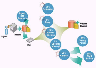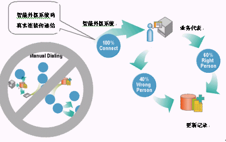 今天,幾乎所有人都已承認(rèn),手工撥號(hào)是聯(lián)絡(luò)中心生產(chǎn)力的最大殺手。采用手工撥號(hào),業(yè)務(wù)代表的每小時(shí)將有多達(dá)45分鐘用于處理非生產(chǎn)性的呼叫,例如未獲得應(yīng)答或者接到忙音信號(hào)或答錄機(jī),而僅有15到20分鐘實(shí)際花費(fèi)在實(shí)時(shí)交談上。