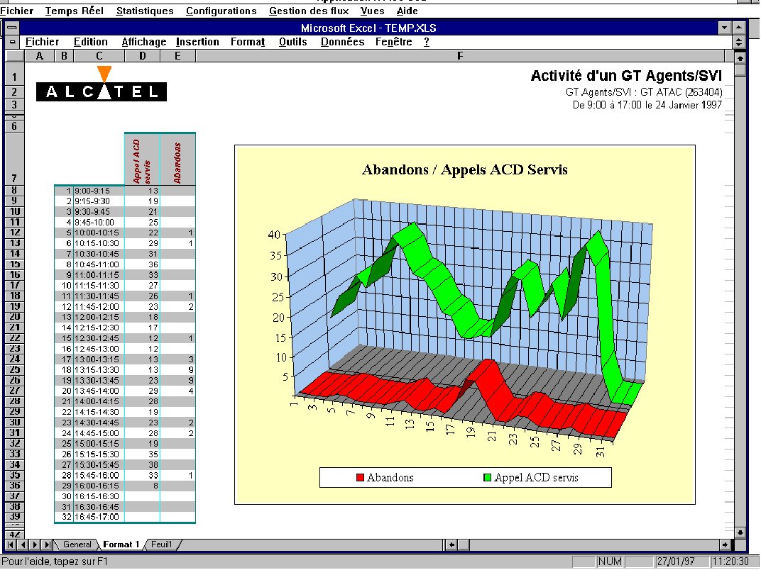 除了實(shí)時(shí)統(tǒng)計(jì),A4400 CCS 用"Excel" 以擴(kuò)展式清單和圖表形式提供詳細(xì)統(tǒng)計(jì)信息。而且,詳細(xì)的通話呼叫水平清單能下載到您的數(shù)據(jù)庫(kù)(以太網(wǎng)TCP/IP 協(xié)議的FTP)根據(jù)用戶的需要可作后期處理。