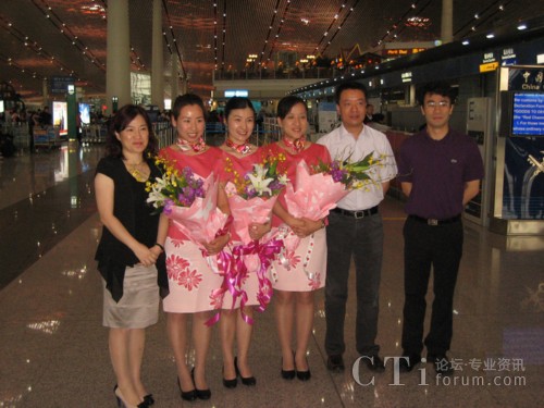 信息導(dǎo)航業(yè)務(wù)中心總經(jīng)理?xiàng)钣、副總?jīng)理魏婕等領(lǐng)導(dǎo)前往機(jī)場(chǎng)送行,中心副總經(jīng)理郝孟堯帶隊(duì)前往韓國(guó)。中心領(lǐng)導(dǎo)向三位114話務(wù)員送上了獻(xiàn)花與祝福,希望她們珍惜此次走出國(guó)門為世博會(huì)服務(wù)的難得機(jī)會(huì),展現(xiàn)114的風(fēng)采,將北京聯(lián)通114最動(dòng)聽的聲音、最美麗的微笑、最優(yōu)質(zhì)的服務(wù)向世界呈現(xiàn)。三位114話務(wù)員表示,將用純正、專業(yè)的中文綜合信息咨詢服務(wù),讓世界感受到聯(lián)通114的熱情與微笑。