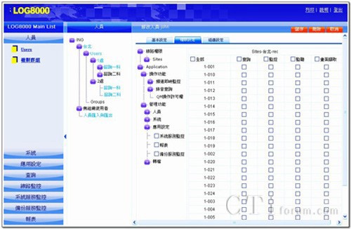 權(quán)限管理設(shè)計,采樹枝狀展開圖之設(shè)計模式,讓系統(tǒng)管理者可以輕易地掌握目前建立組織(各個據(jù)點)、人員(為值機員、督導(dǎo)、評分員或管理者)與不同群組之狀態(tài),設(shè)定多層級的權(quán)限密碼,增加維護(hù)便利性。