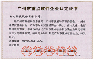 新太科技連續(xù)4年蟬聯(lián)“廣州市重點(diǎn)軟件企業(yè)”稱號(hào)