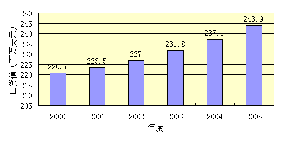 2001-2005年,該市場的年復(fù)合增長率預(yù)計達(dá)到2.4%,至2005年,市場出貨值會突破2.4億美元,這一出貨值涵蓋的產(chǎn)品范圍包括PBX、IP-PBX、無線PBX以及KTS四類產(chǎn)品。