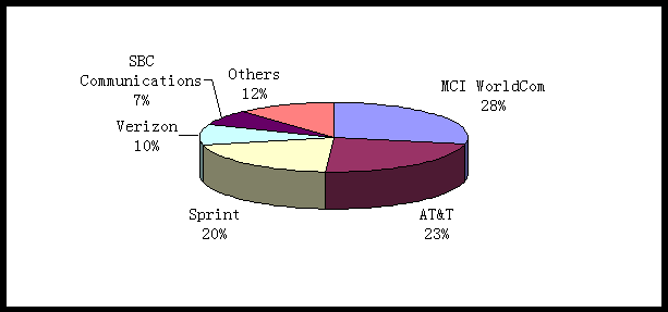 2000年, 美國(guó)寬帶互動(dòng)視頻服務(wù)市場(chǎng)中, MCI WorldCom 是最大的贏家,它所占的市場(chǎng)份額約為28%;其次是AT&T
