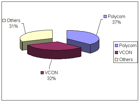 企業(yè)個人桌面視頻會議市場在2001年遭受銷售量和銷售額的巨大萎縮,F(xiàn)在的市場特征是生產商數(shù)量極為有限,大量市場機會尚未被開發(fā)。2001年,銷售額為2610萬美元,較2000年巨幅下降46.1%,