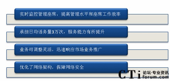 北京農(nóng)村商業(yè)銀行呼叫中心項目負責人在接受采訪時表示,從銀行的運營管理角度而言,通過部署IPCC解決方案,實現(xiàn)了以下改變:一、實時監(jiān)控管理座席,提高了管理水平和座席工作效率;二、系統(tǒng)日承擔話務(wù)量3萬次,服務(wù)能力有所提升;三、可以靈活調(diào)整業(yè)務(wù),迅速相應(yīng)市場業(yè)務(wù)推廣;四、優(yōu)化了網(wǎng)絡(luò)架構(gòu),保障了網(wǎng)絡(luò)安全。