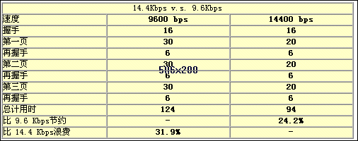 9.6Kbps,可以節(jié)約24.2%的時間(按3頁傳真計算)。各項操作的占用時間比較表如下: