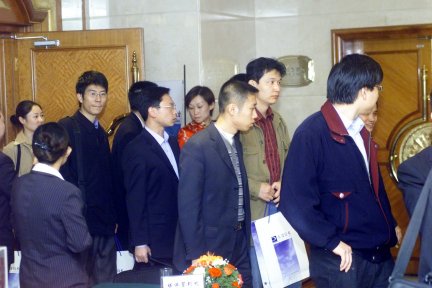 意外之一:預(yù)定的簽到時間是下午兩點,根據(jù)一般與會者都會遲到的"原理",組委會并不著急,沒想到工程師們出于守時的習(xí)慣,不少人提前了一、二十分鐘就到達了,簽到處頓時人滿為患。
