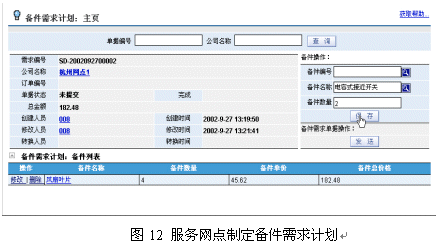可以由系統(tǒng)管理員來(lái)制定一個(gè)備件收發(fā)的流程。首先由最下級(jí)服務(wù)網(wǎng)點(diǎn)制定相關(guān)的備件需求計(jì)劃,該計(jì)劃既可以通過(guò)手工生成,也可以自動(dòng)生成。上級(jí)客服中心的倉(cāng)庫(kù)管理員可以在工作任務(wù)列表中看到下級(jí)服務(wù)網(wǎng)點(diǎn)的備件申請(qǐng)計(jì)劃,在這里可以審核各服務(wù)網(wǎng)點(diǎn)的備件申請(qǐng)計(jì)劃,財(cái)務(wù)主管還需要對(duì)申請(qǐng)網(wǎng)點(diǎn)的押金情況進(jìn)行查閱,根據(jù)押金情況進(jìn)行配件的發(fā)放和回收,最后將已經(jīng)確認(rèn)的申請(qǐng)計(jì)劃轉(zhuǎn)化為訂單。