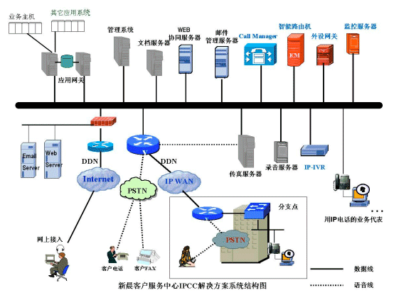 在IP技術(shù)應(yīng)用日益廣泛的今天,新晨集團(tuán)和著名網(wǎng)絡(luò)技術(shù)提供商-美國思科系統(tǒng)有限公司(CISCO)合作,推出了基于IP技術(shù)的CALL CENTER解決方案。該方案以CISCO IP CONTACT CENTER平臺(tái)為核心,簡稱IPCC。