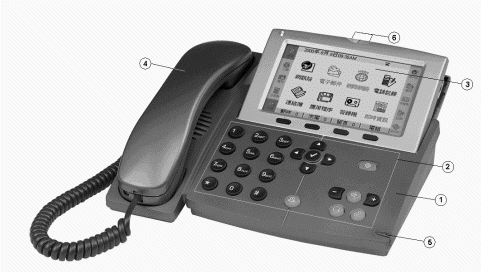 InfoPhone與普通電話機(jī)的最大區(qū)別在于:她擁有增強(qiáng)型的操作面板(圖中標(biāo)識(shí)2),超清晰的液晶顯示螢?zāi)? 圖中標(biāo)識(shí)3),手感舒適的點(diǎn)觸筆(圖中標(biāo)識(shí)5),實(shí)用型的狀態(tài)指示燈(圖中標(biāo)識(shí)6)。通過點(diǎn)觸筆和操作面板上的按鍵點(diǎn)選和控制液晶顯示螢?zāi)簧系倪x項(xiàng),完成相應(yīng)的操作。