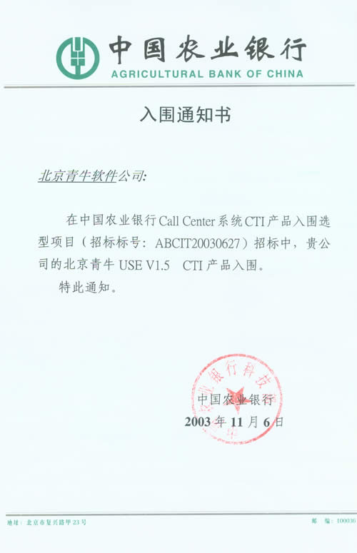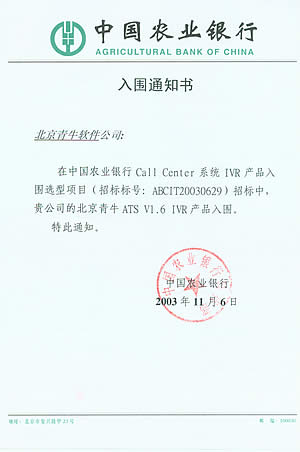 青牛軟件成功入圍中國農(nóng)業(yè)銀行Call Center產(chǎn)品選型