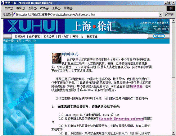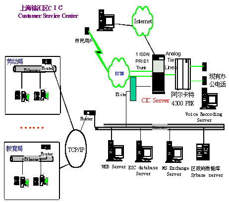 上海市徐匯區(qū)市民咨詢(呼叫)中心的第一期工程包括語音自動應(yīng)答IVR、按需傳真Fax on Demand、語音郵件Voice Mail、網(wǎng)頁互動Web