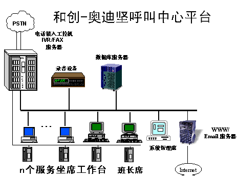 系統(tǒng)專(zhuān)線連接Internet網(wǎng)絡(luò),客戶(hù)可以通過(guò)Internet網(wǎng)絡(luò)與座席人員進(jìn)行電話(huà)交流。