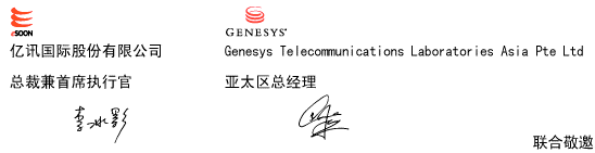 屆時,不僅有Genesys全球總裁率領資深專家向您介紹客戶關系管理領域的市場動向與未來趨勢,還帶來了全球拭目以待、發(fā)熱發(fā)光的Genesys最新產品 ── G7。此外主辦單位更有幸請來兩岸三地知名客戶,提供商務應用實例,共同分享其成功經驗,為您的企業(yè)及同行業(yè)提供了相互交流的機會。