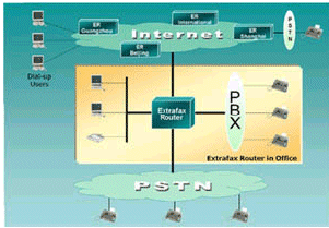 (即最節(jié)省的方式) 通過(guò)Internet/Intranet發(fā)送傳真,同時(shí)ExtraFax Router基于DID/DTMF/CSID/PORT/Channel的自動(dòng)分發(fā)到個(gè)人的傳真信箱也降低了人工管理的費(fèi)用并能實(shí)現(xiàn)傳真的安全性。