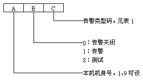1 告警信息編碼 若發(fā)生告警或告警關(guān)閉時,在BP機上會收到3位數(shù)字的代碼信息,其它具含義如下: