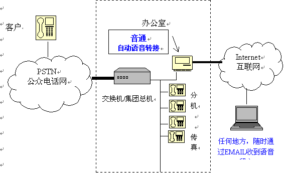 【音通】系統(tǒng)一經(jīng)安裝,生產(chǎn)力及工作效率便可大大提升。接線員不需再無時(shí)無刻守候在電話旁邊處理來電。即使在辦公時(shí)間過后,此系統(tǒng)仍能繼續(xù)自動(dòng)運(yùn)作。方便的語音郵箱功能,隨時(shí)隨地收聽E-MAIL。