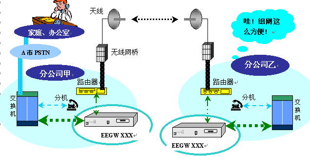 8202 FXS、EEGW 8262 FXS),然后連接普通電話機(jī)。或者通過運(yùn)營商提供的寬帶接入,直接連接VoIP網(wǎng)絡(luò)電話機(jī)(EEGW 8801)。