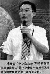 楊波說(shuō):“中小企業(yè)的CRM實(shí)施原本就很簡(jiǎn)單,只是中小企業(yè)一直沒(méi)有找準(zhǔn)合適的軟件才使這一過(guò)程復(fù)雜化!