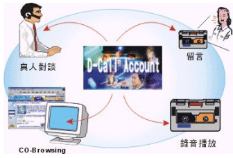2、D-Call可依需求彈性設(shè)計: 話務(wù)轉(zhuǎn)接方式可依網(wǎng)站需求有二種選擇: 一是選擇金倚信息轉(zhuǎn)接服務(wù), 每分鐘費用為NTD1.0元整,