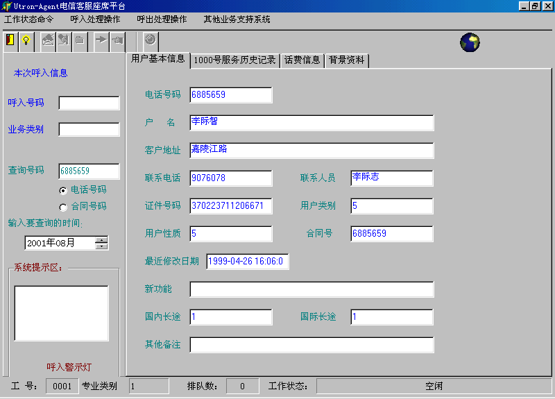 。。Utron-CC2000電信客戶服務(wù)中心系統(tǒng),支持傳統(tǒng)電話、傳真、電子郵件、Web等多種媒體呼叫接入,提供多種特服業(yè)務(wù)(112、114、170、180、189等)的綜合受理,從而實(shí)現(xiàn)電信客戶服務(wù)中心的基本建設(shè)目標(biāo):