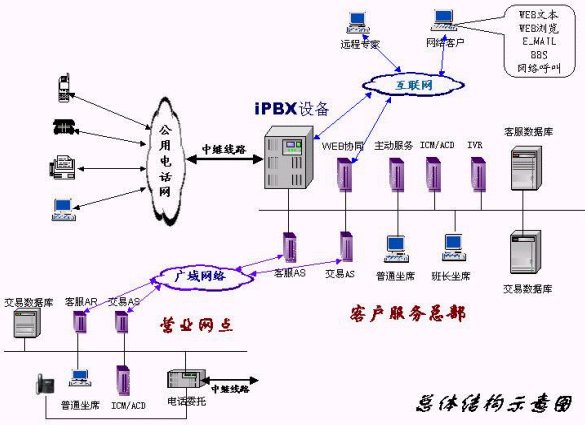 交互語音應(yīng)答)、ACD(Automatic Call Distribution 自動(dòng)呼叫分配)以及Web協(xié)同、座席管理、傳真、錄音管理、業(yè)務(wù)流程生成等子系統(tǒng)組成。形成獨(dú)立于用戶業(yè)務(wù)的通用支撐系統(tǒng),其核心是ICM--智能呼叫管理。