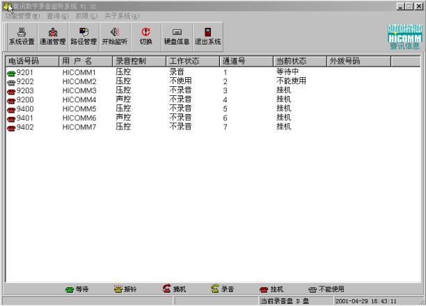 系統(tǒng)管理員根據(jù)權(quán)限可以對(duì)系統(tǒng)的任一路電話進(jìn)行監(jiān)聽,此時(shí)被監(jiān)聽的說話雙方絲毫不會(huì)有所察覺,