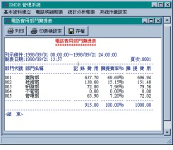 TeleSMDR話務(wù)分析計費系統(tǒng),是一套搭配舜遠交換機的專屬電話計費系統(tǒng)。TeleSMDR 為您詳細記錄每一通外撥的電話通話時間、撥號號碼等,并且還提供完整電話帳及查詢報表、電話費用攤提等功能,如您可查詢特定分機在特定日期是否有打過國際電話。公司內(nèi)所有分機的通話時間、通話費、撥號號碼等將在計算機上一覽無遺。
