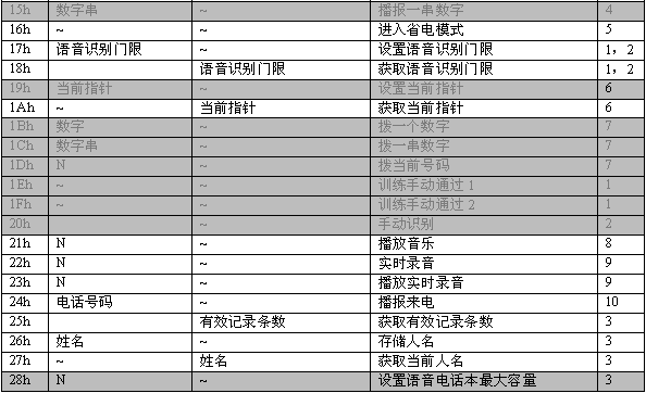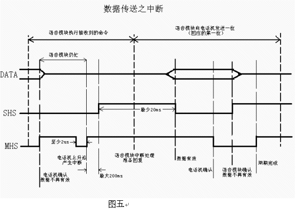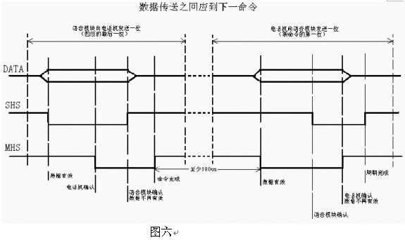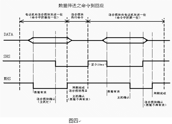 以下的表格和時序圖詳細(xì)描述了電話機(jī)控制芯片和語音模塊間的數(shù)據(jù)傳送: