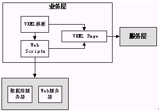 Scripts(ASP,JSP等)語言訪問外部系統(tǒng)以獲取數(shù)據(jù),把這些數(shù)據(jù)合并到VXML的模板中,形成完整的業(yè)務(wù)流程。服務(wù)層獲得該業(yè)務(wù)流程后,就可以按照該流程和用戶進(jìn)行交互。