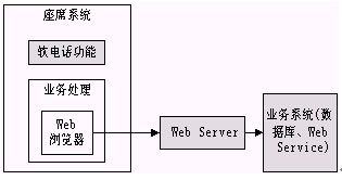 從上圖可以看出,座席端所有的業(yè)務(wù)處理都是在Web瀏覽器上進(jìn)行的,所以無論是利用原有系統(tǒng)還是新開發(fā)系統(tǒng),用戶都不必要關(guān)心座席的具體實現(xiàn)方式,要做的僅僅是編寫新的JSP,ASP等可訪問后臺業(yè)務(wù)的Web頁面,然后進(jìn)行簡單的配置就可以完成業(yè)務(wù)的擴(kuò)充功能。