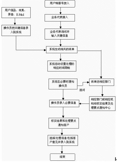 外線撥入系統(tǒng)后,如果選擇自動(dòng)受理,系統(tǒng)通過(guò)交互式語(yǔ)音應(yīng)答方式,引導(dǎo)用戶完成投訴過(guò)程。系統(tǒng)實(shí)時(shí)記錄與處理投訴的全部對(duì)話過(guò)程。