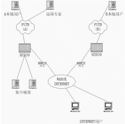 等接口實現(xiàn),每條話路只須8Kbit/s帶寬,并支持網(wǎng)絡(luò)優(yōu)化路由及D通道座席預(yù)約,大大降低網(wǎng)絡(luò)連接費用,提高運行效率。目前主流的方式是采用VoIP技術(shù)。物理鏈路利用集團的專用廣域網(wǎng)絡(luò)。