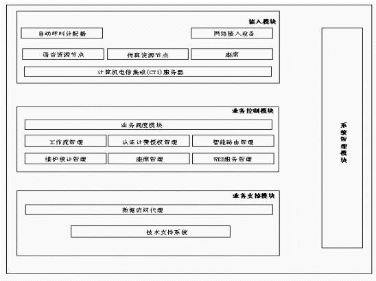 另外從CTI技術(shù)和呼叫中心的角度來看,也應(yīng)當實現(xiàn)適當線路數(shù)的自動語音應(yīng)答(IVR)功能,呼叫/業(yè)務(wù)處理數(shù)據(jù)的統(tǒng)計功能,電話錄音留言功能,對主叫用戶和被叫信息號碼的有效性進行檢查的功能,系統(tǒng)管理維護功能等才能構(gòu)成一個完整的呼叫中心系統(tǒng)。