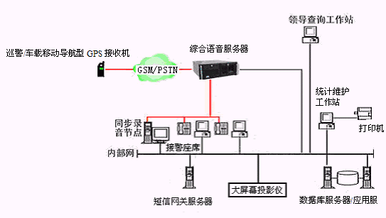 指揮調(diào)度中心包括智能接警處警平臺,警用電子地理信息系統(tǒng)(GIS),數(shù)字錄音系統(tǒng)和大屏幕投影儀等。