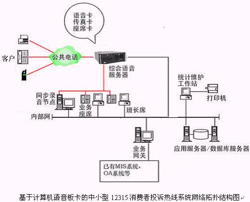 客戶利用電話、手機(jī)等撥打特服號(hào)碼12315進(jìn)入中小型12315消費(fèi)者投訴熱線系統(tǒng),本系統(tǒng)依托貴工商局各類業(yè)務(wù)技術(shù)支持系統(tǒng)和網(wǎng)絡(luò)系統(tǒng),通過人工受理或自動(dòng)語音服務(wù)等方式全天24小時(shí)不間斷地為客戶提供各種服務(wù)。