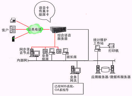 本系統(tǒng)建議采用基于計算機語音板卡的語音接入方式,支持1號線路的接入,保障系統(tǒng)的可靠性和穩(wěn)定性,可以減少煤氣公司一期工程投資,同時具有良好的系統(tǒng)性能。