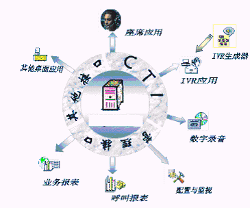 SERVER,從而構(gòu)成了軟硬件高度集成的一體化交換機(jī)呼叫中心平臺。