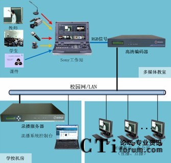 該項目中,高清編碼器完全支持Sony工作站輸出的高分辨率視頻信號(信號清晰度最高為1280×1024)。錄播服務器實現(xiàn)多間教室教學實況的并發(fā)錄制、直播、點播,并且支持大容量點播,充分彌補了Sony工作站大容量直播、點播限制。