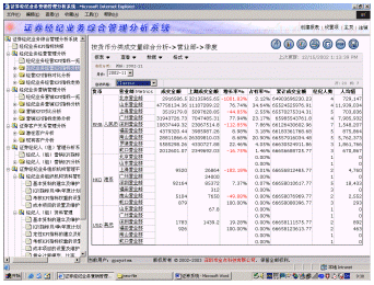 深圳市金點科技有限公司率先采用國際先進的商務(wù)智能(BI)和數(shù)據(jù)挖掘技術(shù)、借鑒國外證券行業(yè)成熟的管理經(jīng)驗,結(jié)合國內(nèi)證券行業(yè)的特點,推出"證券經(jīng)紀(jì)業(yè)務(wù)綜合管理分析系統(tǒng)",該系統(tǒng)是證券經(jīng)紀(jì)業(yè)務(wù)的集中管理和決策分析系統(tǒng),具有很強的靈活分析功能。該系統(tǒng)主要是對證券經(jīng)紀(jì)業(yè)務(wù)經(jīng)營決策、市場營銷和客戶服務(wù)進行管理和分析,為證券經(jīng)紀(jì)業(yè)務(wù)管理部門加強對營業(yè)機構(gòu)管理、制定營銷戰(zhàn)略、加強對證券經(jīng)紀(jì)隊伍的建設(shè)和提高客戶服務(wù)質(zhì)量提供科學(xué)的決策依據(jù)。