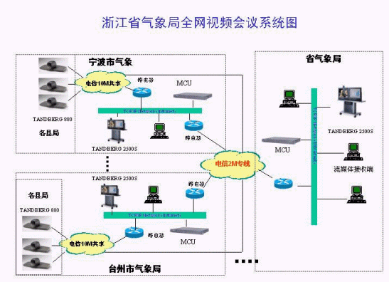 浙江省氣象局為了響應(yīng)全國氣象系統(tǒng)的號召,充分利用自己網(wǎng)絡(luò)資源的優(yōu)勢,于2003年初經(jīng)過系統(tǒng)方案的征集、產(chǎn)品的反復(fù)測試,最終確定了由華夏科技代理的挪威TANDBERG的視頻終端,并于2003年9月份簽訂了一期采購合同,共計40多套視頻終端。