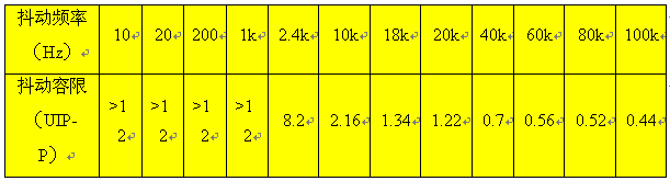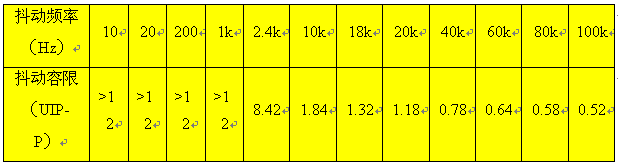 - 抖動容限大于1.5UI(20HZ-2.4KHZ )