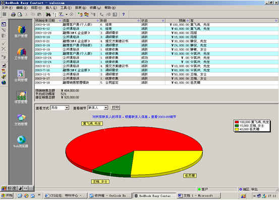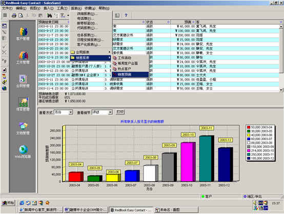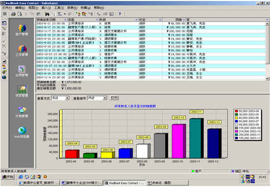 可根據(jù)月份、項(xiàng)目階段、聯(lián)系人、客戶、項(xiàng)目級(jí)別、銷(xiāo)售代表等條件進(jìn)行查看項(xiàng)目細(xì)節(jié),其中有詳細(xì)項(xiàng)目情況列表,也包括圖示。